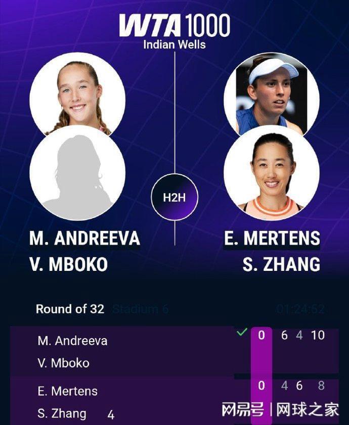 双打首轮:中国老将张帅与比利时人梅尔滕斯的跨国组合以4-6 6-4 8-10不敌俄加组合米拉-安德列娃/姆博科,无缘晋级。至此,张帅在单双打赛场上都遭遇一轮游,双线出局。另一对中国组合徐一璠/杨钊煊以6-3 6-0送蛋横扫本西奇/科斯蒂亚,强势挺进次轮。